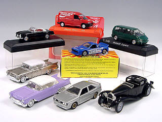 modèles reproduisant les marques : RENAULT, CADILLAC, AUDI, BUGATTI, FACEL VEGA, LANCIA & PEUGEOT - 4 modèles avec boîte - manque insigne de calandre
