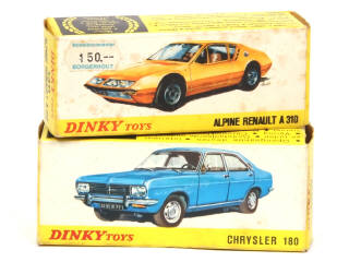 comprend : CHRYSLER 180 & ALPINE RENAULT A310 (étiquette de détaillant collée sur une face - un petit manque de papier) - petites taches d'humidité (boite plus ou moins salies)