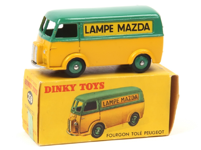 DINKY TOYS (FRANCE) 25B PEUGEOT D3A 'LAMPE MAZDA' vert & jaune