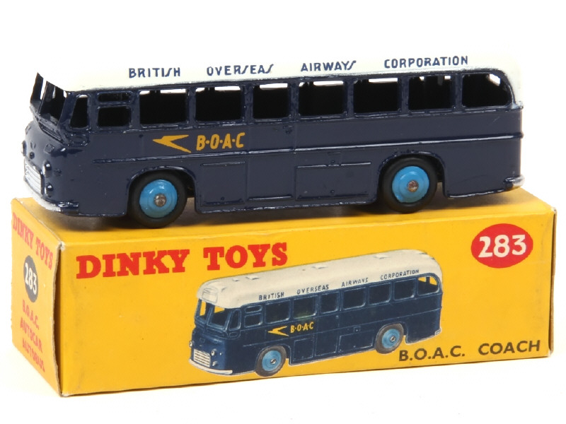 DINKY TOYS (GB) 283 Bus 'B.O.A.C' bleu foncé, toit blanc & jantes bleu vif