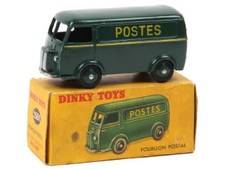 DINKY TOYS (FRANCE) 25BV PEUGEOT D3A 'POSTES' (première version avec inscriptions au tampon) vert foncé