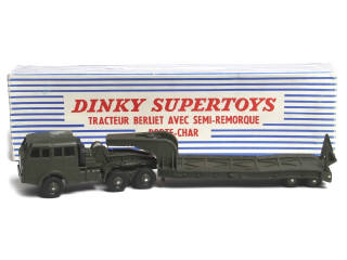 DINKY TOYS (FRANCE) 890 BERLIET Transport de char (version avec jantes du tracteur & de la remorque convexes) kaki
