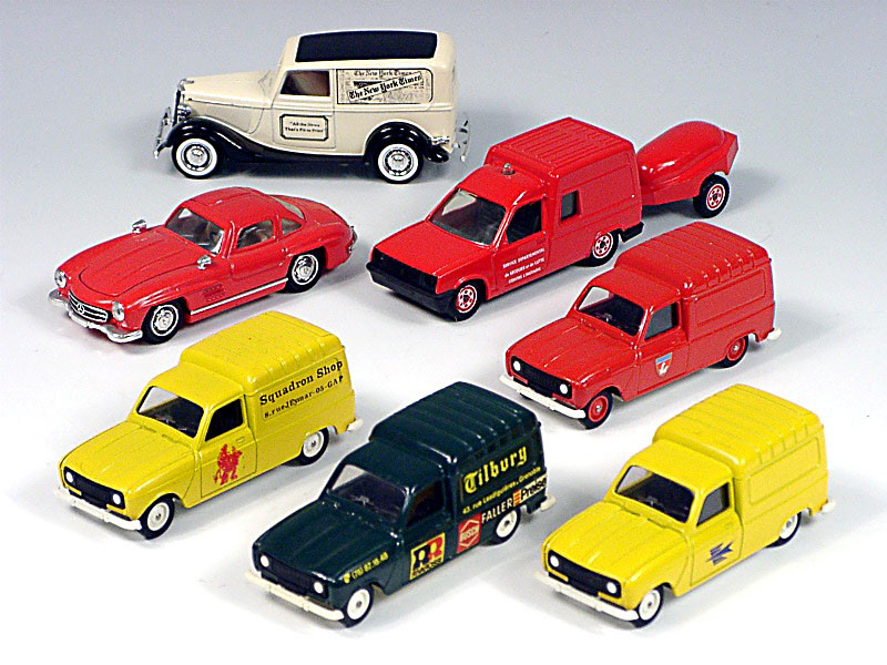 miniatures reproduisant les marques : RENAULT, MERCEDES & FORD - un modèle avec remorque - un pare-chocs recollé