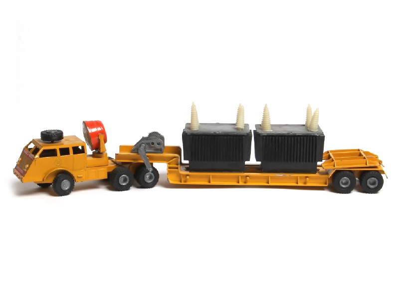convoi exceptionnel BOURGEY MONTREUIL - version avec publicité BOURGEY MONTREUIL de couleur blanche sur fond rouge - câbles manquants - quelques fixations déficientes