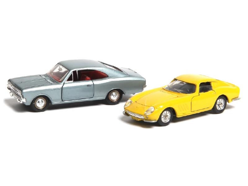 comprend : FERRARI 275 GTB (quelques petits éclats par endroits - garnitures de portières à recoller) & OPEL REKORD 1900 coupé