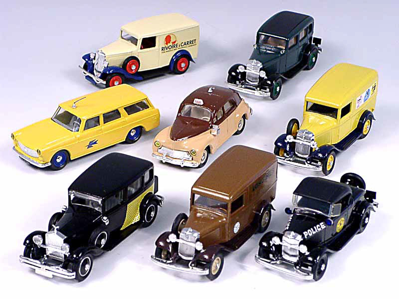 miniatures reproduisant les marques : FORD, PEUGEOT, CITROËN & ROLLS ROYCE - une antenne cassée