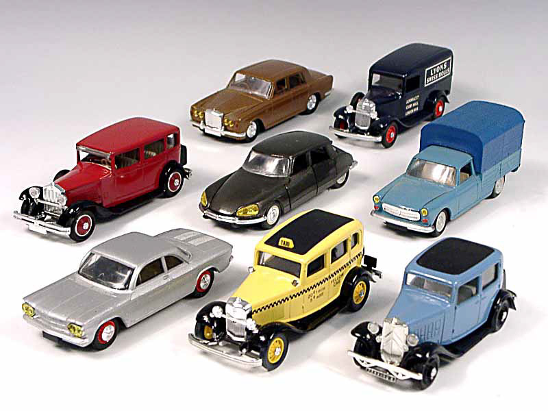 miniatures reproduisant les marques : FORD, PEUGEOT, CITROËN, CHEVROLET, BENTLEY & ROLLS ROYCE - 2 pneus fendus