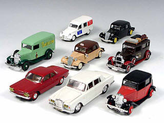 miniatures reproduisant les marques : FORD, CITROËN, CHEVROLET, TALBOT & ROLLS ROYCE - 3 pneus fendus & un insigne de calandre cassé