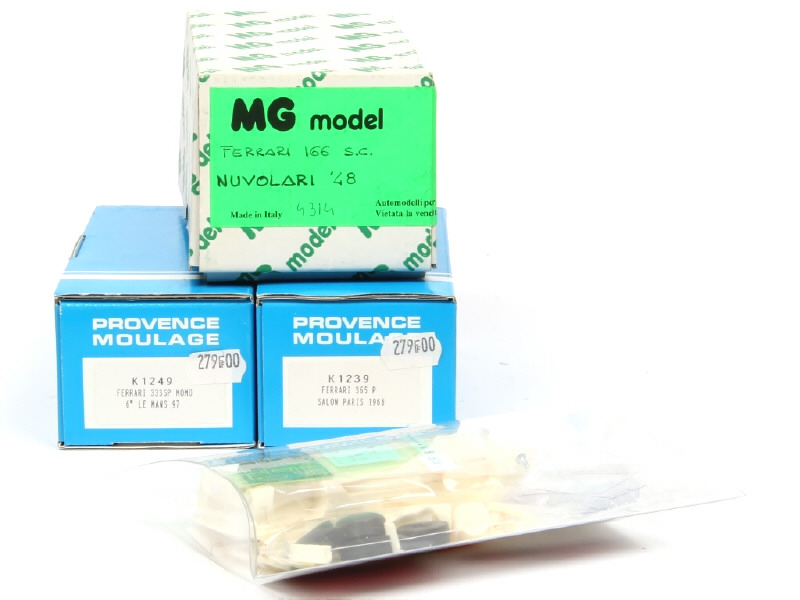 kits à monter - semblent complets - comprend notamment les modèles : 365 P, 333 SP & 166 S.C - on y retrouve les marques : PROVENCE MOULAGE, MG MODEL & MODELLINI