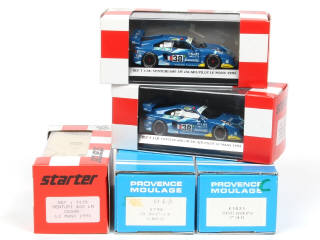 kits montés - semblent complets - comprend les modèles : 600 LM (4 exemplaires) & 500 - on y retrouve notamment les marques : PROVENCE MOULAGE & STARTER - annotations sur quelques boîtes