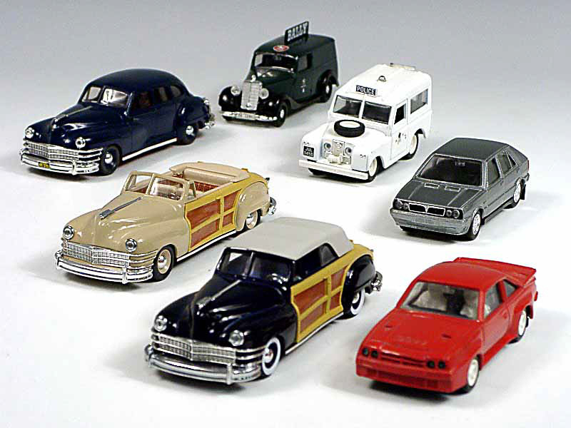 miniatures reproduisant les marques : LAND ROVER, CHRYSLER, MERCEDES, LANCIA & OPEL - suspension à revoir sur l'un des modèles