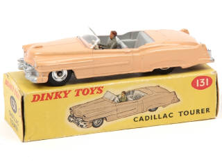 DINKY TOYS (GB) 131 CADILLAC Tourer décapotable saumon, intérieur gris & jantes aluminium