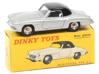 DINKY TOYS (FRANCE) 526 MERCEDES 190 SL (version avec vitres & jantes concaves) gris métal, toit noir