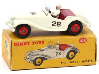 DINKY TOYS (GB) 108 MG MIDGET Sports blanc, intérieur bordeaux, jantes rouges