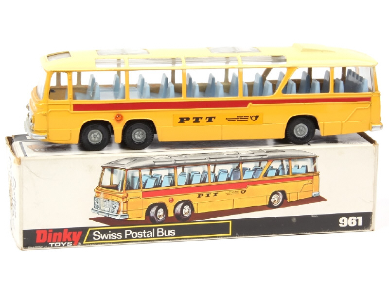 DINKY TOYS (GB) 961 VEGA MAJOR COACH 'P.T.T' SUISSE jaune, rouge & crème