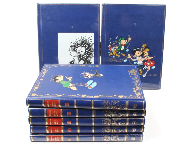 7 volumes reprenant la collection GASTON LAGAFFE, MODESTE ET POMPON & LES IDEES NOIRES - ensemble tout proche de l'état neuf - 2 exemplaires encore emballés