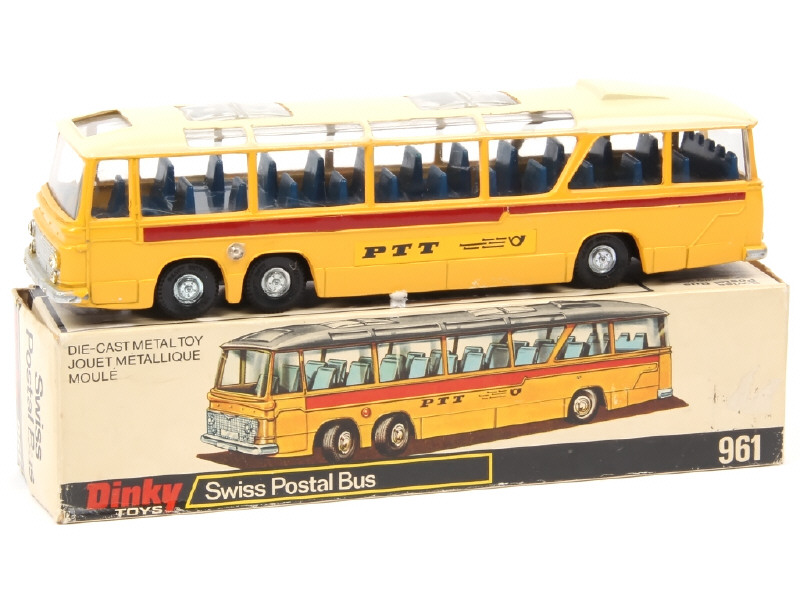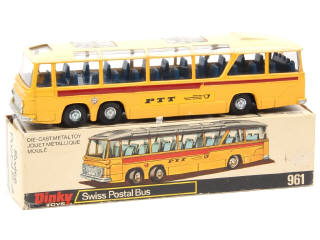 DINKY TOYS (GB) 961 VEGA MAJOR COACH 'P.T.T' SUISSE jaune, rouge & crème