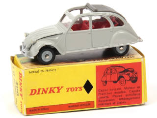 DINKY TOYS (FRANCE) 500 CITROËN 2CV Décapotée (made in SPAIN) gris clair, jantes grises