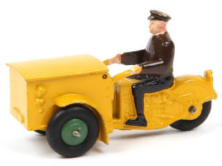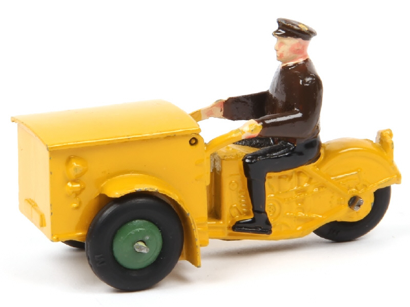 DINKY TOYS (FRANCE) 14A Triporteur (dernière version avec roues à pneus 'M') jaune, jantes vertes & pilote à chemise marron