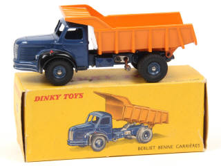 DINKY TOYS (FRANCE) 580 BERLIET Benne carrière MARREL (version avec jantes concaves) bleu foncé & orange