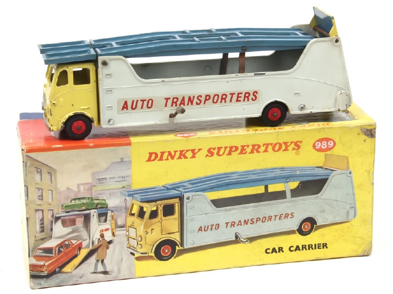 DINKY TOYS (GB) 989 LEYLAND BEAVER Porte-voitures 'AUTO TRANSPORTERS' jaune citron, gris clair & bleu métal
