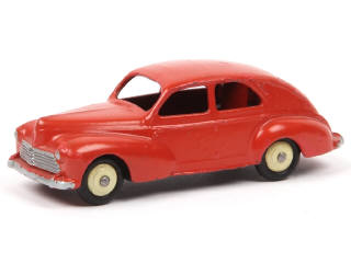 DINKY TOYS (FRANCE) 24R PEUGEOT 203 Petite lunette arrière (version avec intérieur de toit quadrillé & ailes lisses) corail, jantes crème (essai de couleur)