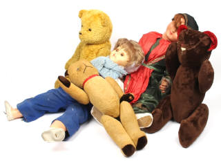 DIVERS Ensemble de 3 peluches & 2 poupées