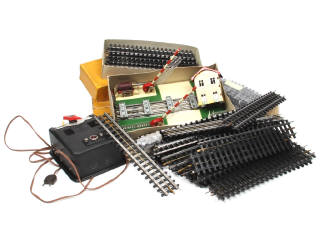 non testé - comprend : un transformateur 6056U, un passage à niveau (référence 6363, boîte en état 'c') & différents rails en plastique de la marque (dont 12 exemplaires en boîte)