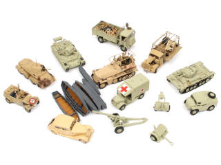 DIVERS Ensemble de 10 véhicules militaires, 2 canons & accessoires