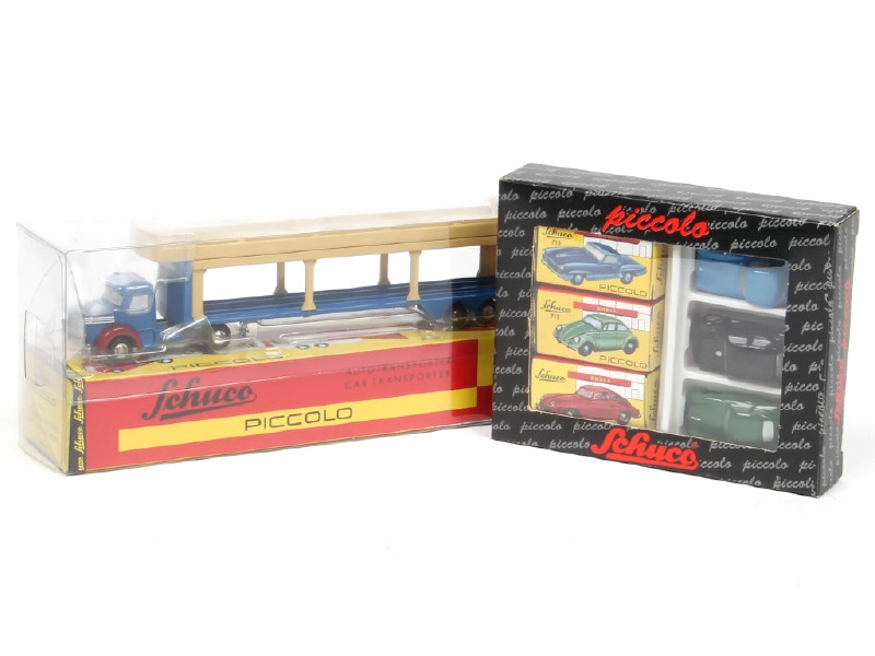 série 'PICCOLO' (production récente) - comprend : KRUPP semi-remorque transport d'autos (référence 761), MERCEDES, VOLKSWAGEN & PORSCHE (réunis en coffret 01235)