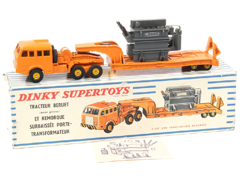 DINKY TOYS (FRANCE) 898 BERLIET Semi-remorque plateau porte-transformateur (version avec jantes de remorque convexes) orange