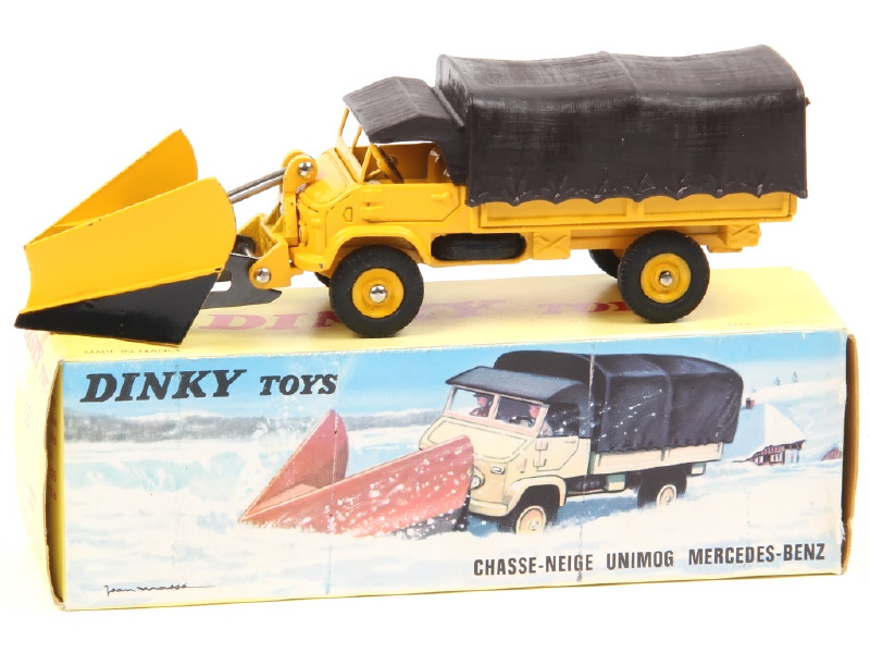 DINKY TOYS (FRANCE) 567 MERCEDES UNIMOG Chasse-neige jaune & noir, bâche marron foncé