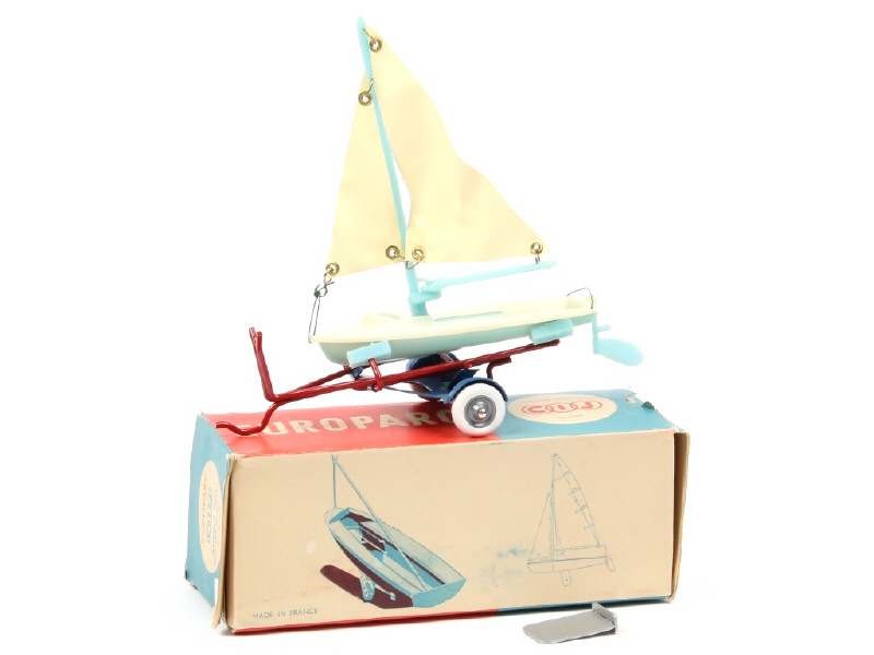 C.I.J. (FRANCE) 3/76A Voilier sur sa remorque crème, bleu ciel & bleu