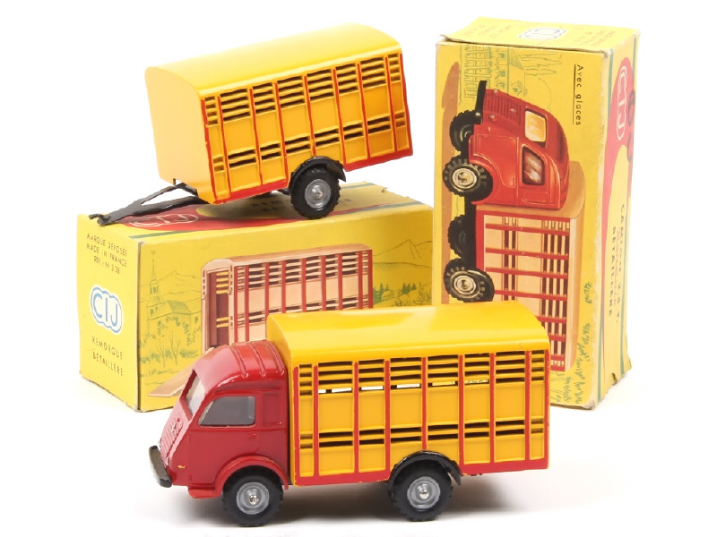 C.I.J. (FRANCE) 3/28 Remorque-bétaillère jaune d'or & rouge