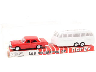 contient : MERCEDES 250 SE & caravane - avec cale en plastique