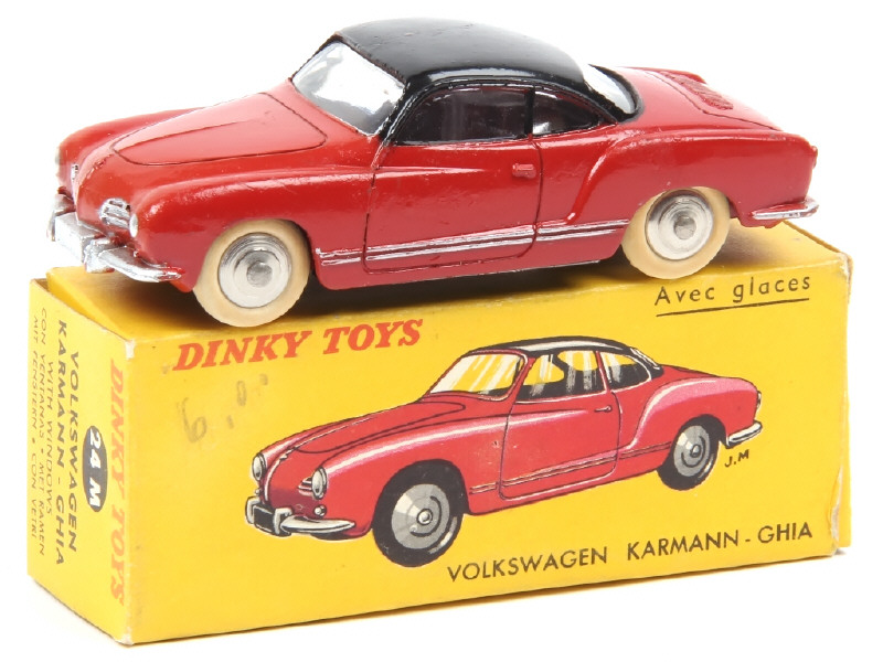 DINKY TOYS (FRANCE) 24M VOLKSWAGEN KARMANN GHIA (2ème version avec avant plat & jantes convexes) rouge, toit noir