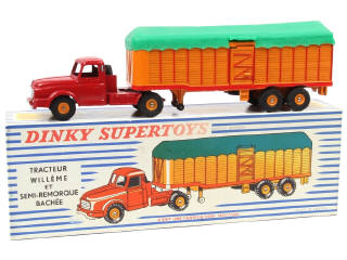DINKY TOYS (FRANCE) 896 WILLEME Semi-remorque bâché (version avec jantes concaves) rouge & orange, bâche verte