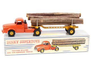 DINKY TOYS (FRANCE) 897 WILLEME Fardier (version avec jantes concaves & remorque ajourée) orange & jaune