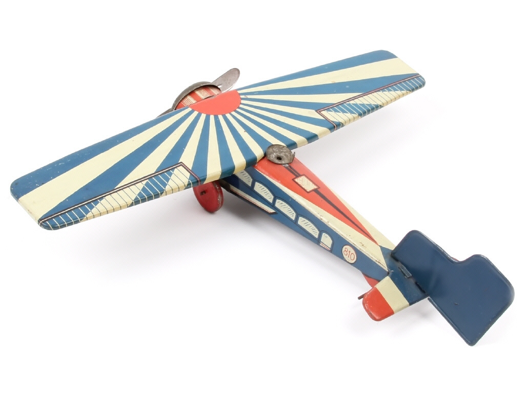 MEMO (FRANCE) 810 Avion monoplan en tôle lithographiée bleu, blanc & rouge