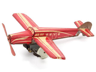 M.L. (FRANCE) 650 Avion monomoteur en tôle lithographiée rouge & crème