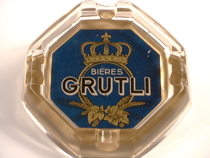 OBJETS PUBLICITAIRES Cendrier 'BIERES GRUTLI' bleu & doré