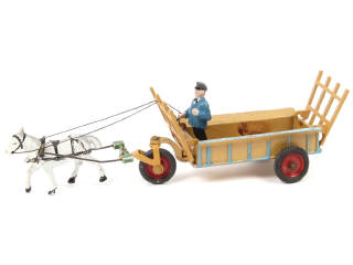 retouches (ridelles & personnage repeints) - intérieur de benne tachée & encrassée - quelques fixations non d'origine - pneus plus ou moins craquelés