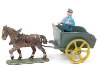 QUIRALU (FRANCE) Tombereau hippomobile avec roues à rayons bleu & jaune