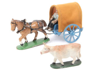 QUIRALU (FRANCE) Ensemble d'un fermier, 2 animaux & une charrette