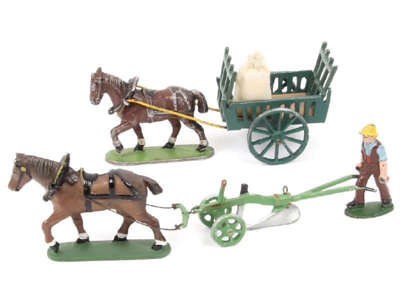 QUIRALU (FRANCE) Ensemble d'un fermier, 2 matériels agricoles & 2 chevaux