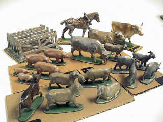 QUIRALU (FRANCE) Ensemble de 4 moutons & un chien beige & marron