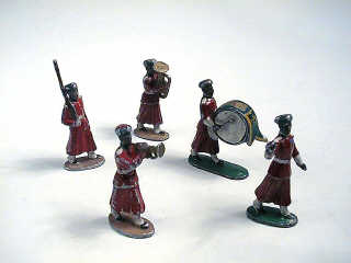 dont 1 grosse caisse (C), 1 clairon (D), 1 piston (D), 1 garde fusil dur l'épaule (C) et 1 garde bras levé (C)