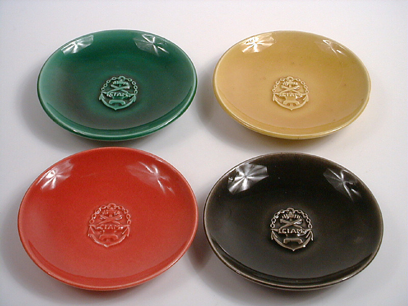 OBJETS PUBLICITAIRES Ensemble de 4 cendriers 'CIAM' jaune, vert, rouge & marron