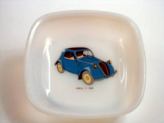 LAMPES MAZDA Cendrier en céramique représentant une SIMCA 5 1936 blanc