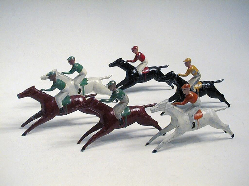 FIGURINES DIVERSES Ensemble de 6 galopeurs avec jockey